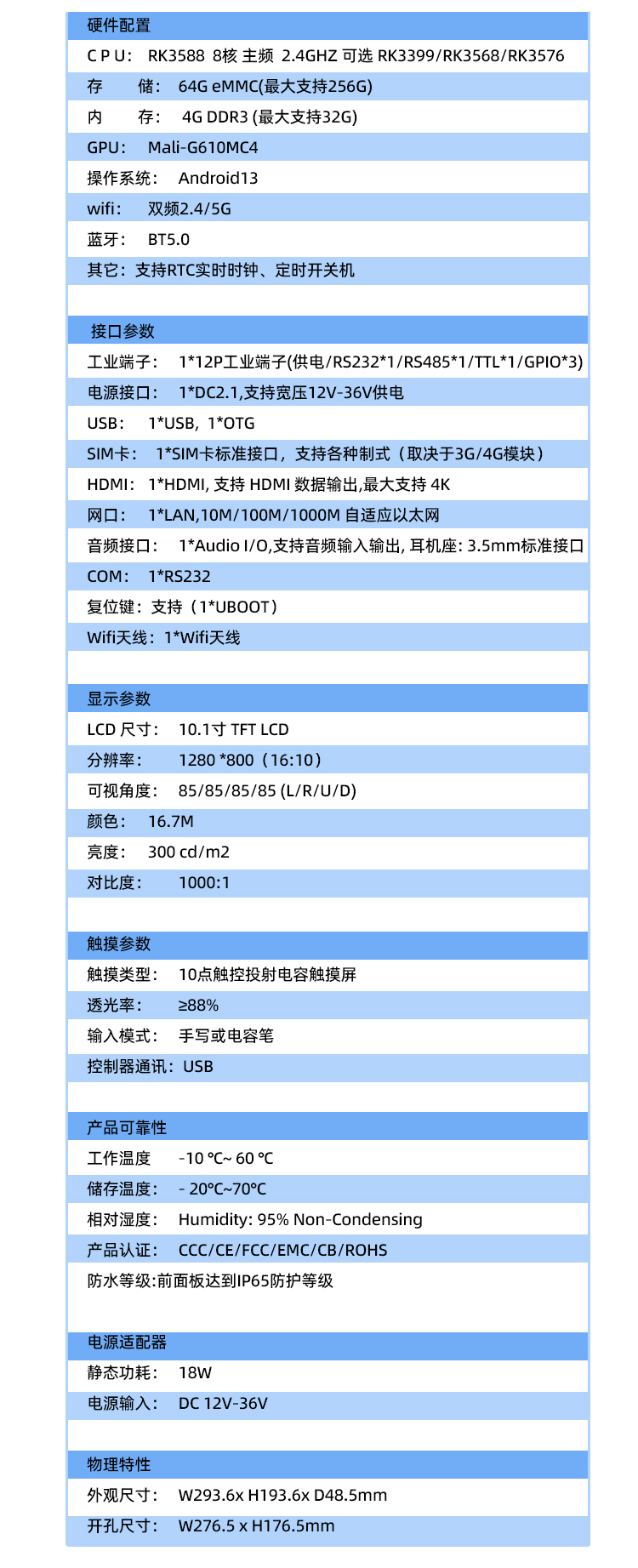 10.1寸工業一體機ARM架構RK3399防水防塵超薄前面框