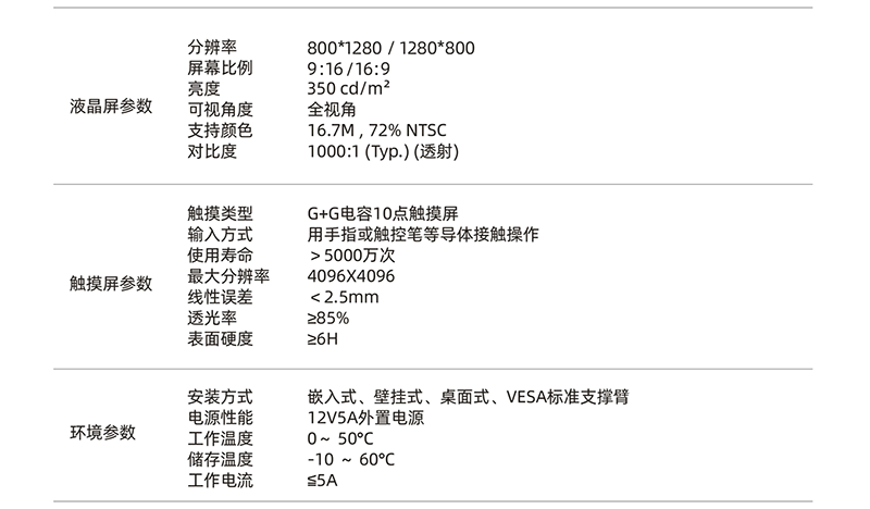| 顯示亮度 | 350cd/m2(可定制400cd/m2以上高亮度) |
