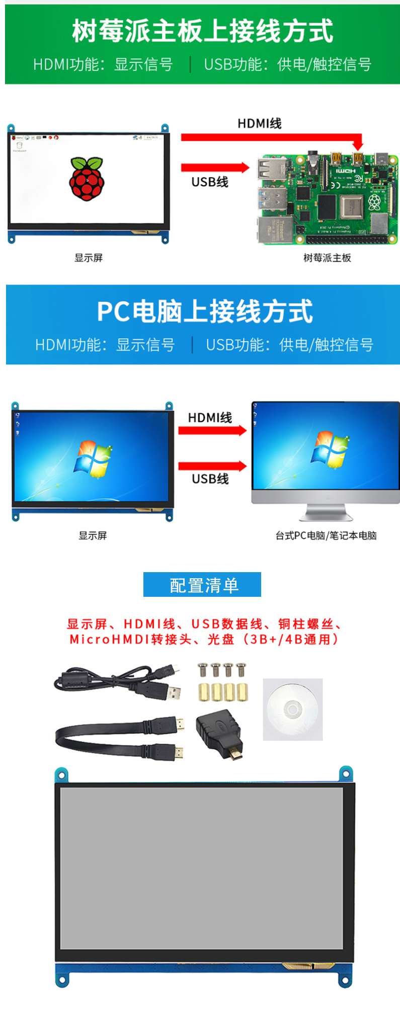樹莓派1.44/2.8/3.5/5.0/7寸/10.1寸電容觸控顯示屏HDMI接口IPS屏