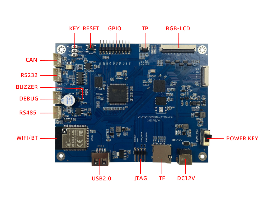 高集成度:STM32F103主板采用軍用級TG180-2層超高密度印刷電路板,集成TF、2.4/5G雙頻WiFi、藍牙5.0、USB、RGB、RX232、RX485、CAN、觸摸等,大大簡化了整體設(shè)計。超薄主板設(shè)計使整體設(shè)計更加美觀。
